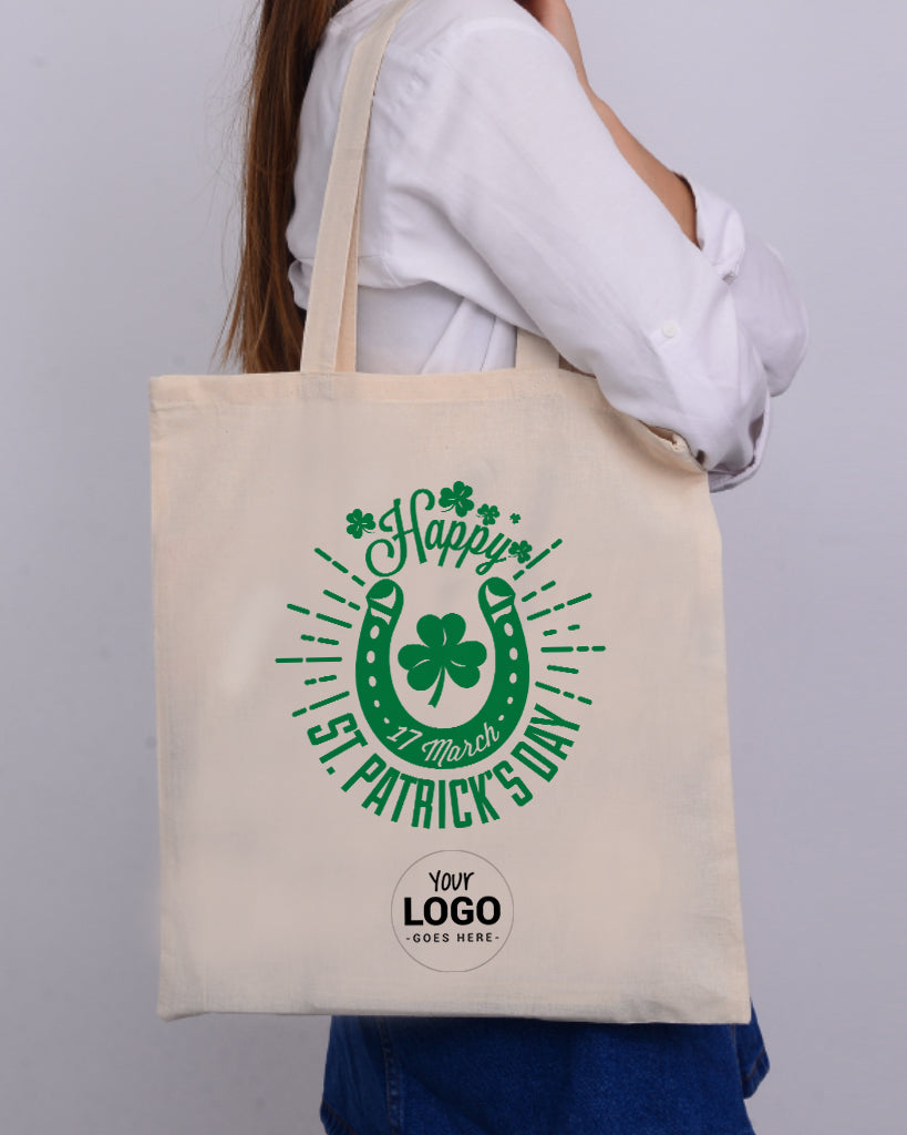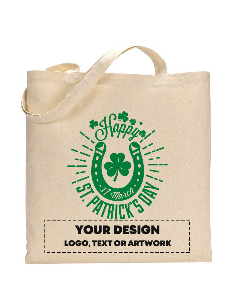 Order our St Patrick's Tote Bag printed on natural cotton bags with self fabric handles. You can add your company logo, wedding date, a text, name or artworks to customize them. Affordable printing with the best quality bags on the market. Shop with confidence, TotebagFactory.com offers the cheapest prices and live customer service. Our company provides blank bags as well as custom bags with your logo.