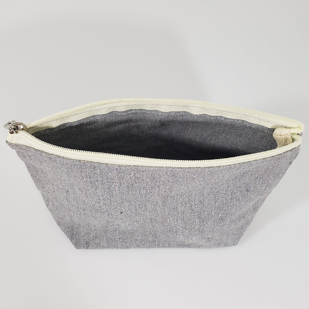 120 ct Large Size Recycled Flat Zipper Cosmetic Bag - By Case - Grey is backordered and will ship as soon as it is back in stock.