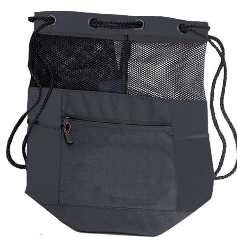 The look of the this drawstring bag stands out. Enjoy different textures and styles in one. From solid to mesh and mesh see through! Comes with a handy zippered pocket and a cheap drawstring bag price you can't beat.