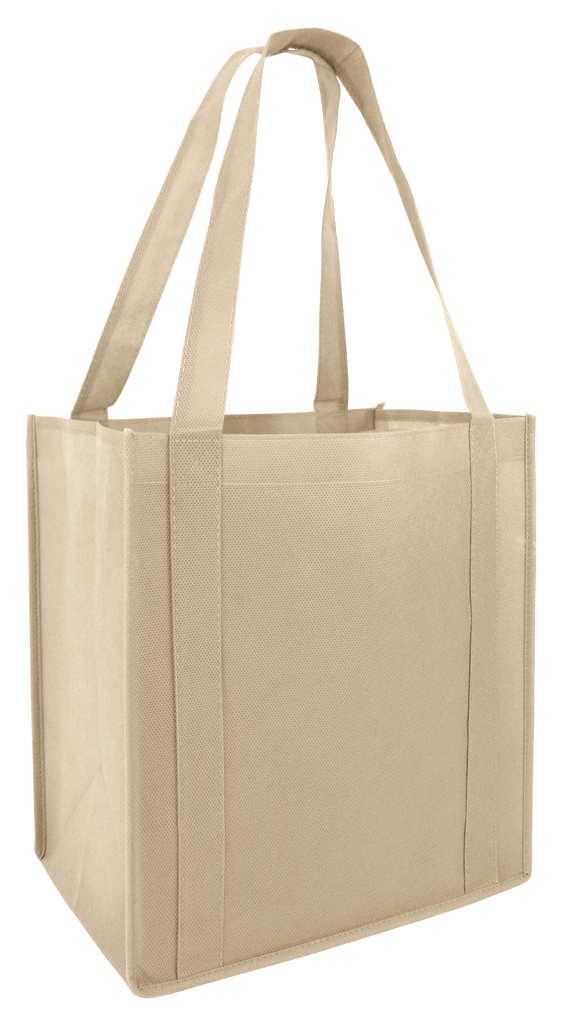 Very Durable High Quality Grocery bags for cheap prices are what ToteBagFactory.com has to offer. This bag is made out of 100 gm Non-Woven Polypropylene fabric and comes in 14 different colors.