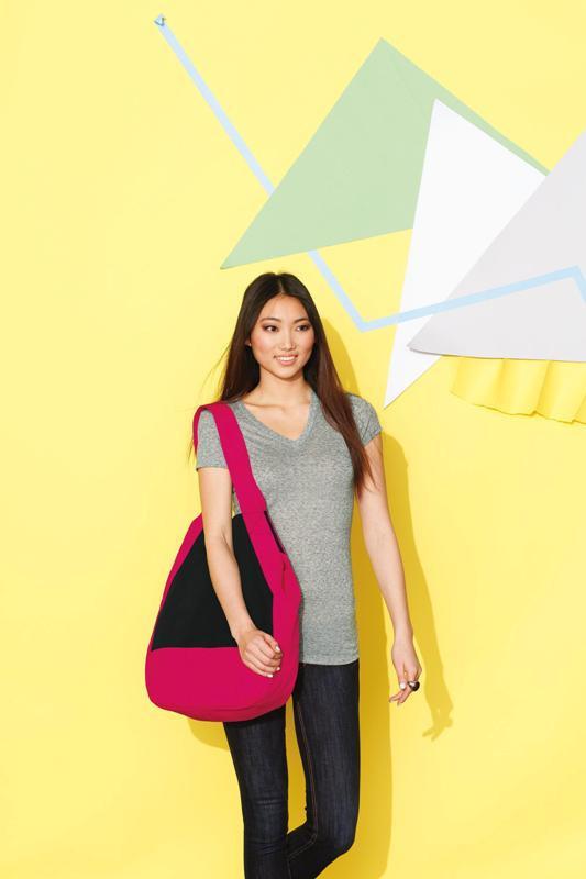 Bold color blocking and magnet snaps closure make this the coolest tote around.-