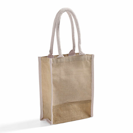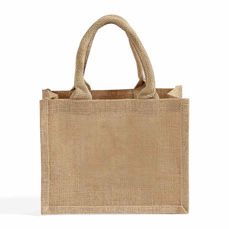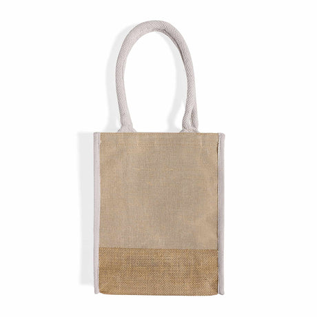 Small Jute Blend Tote Bags with Full Gusset and Burlap Accents - TJ911