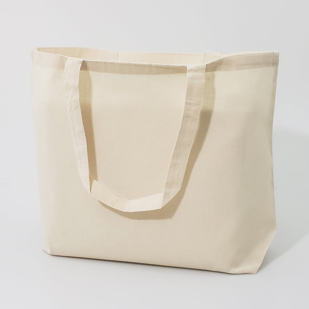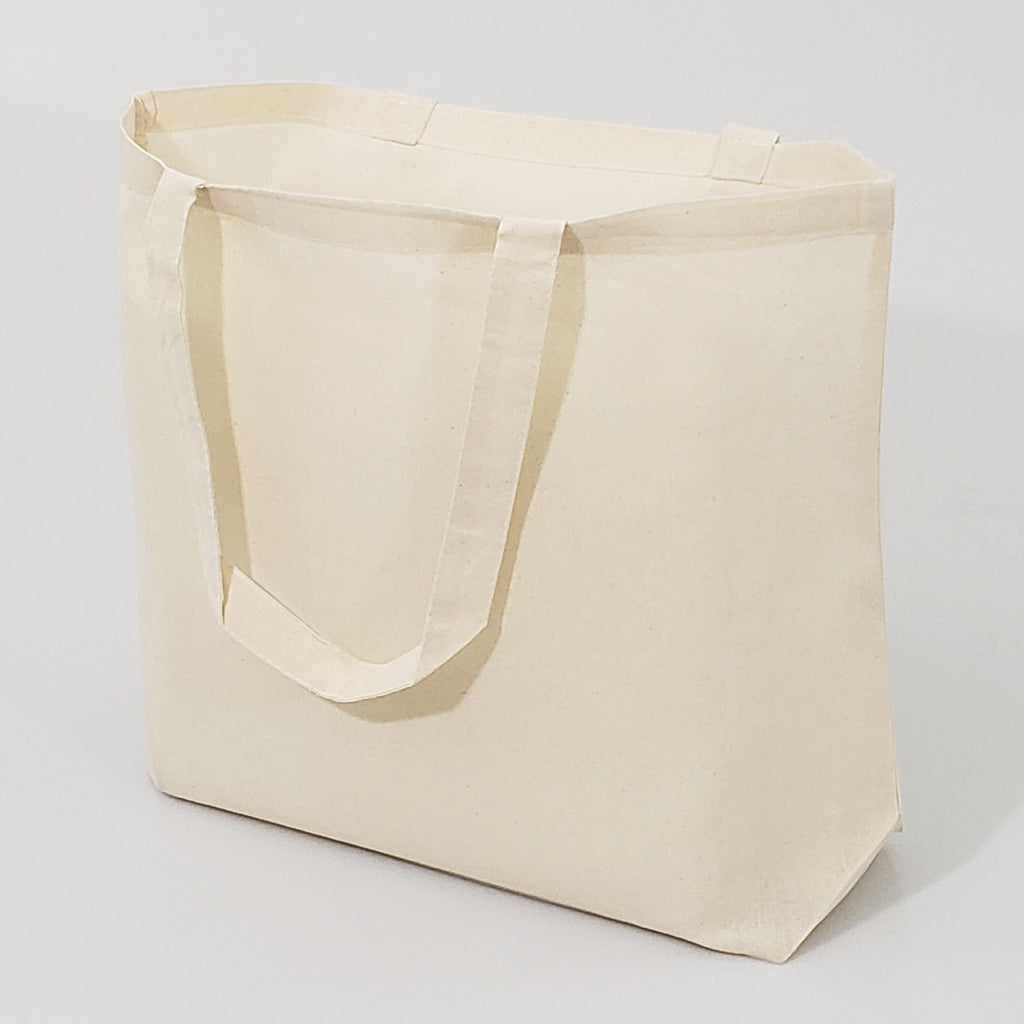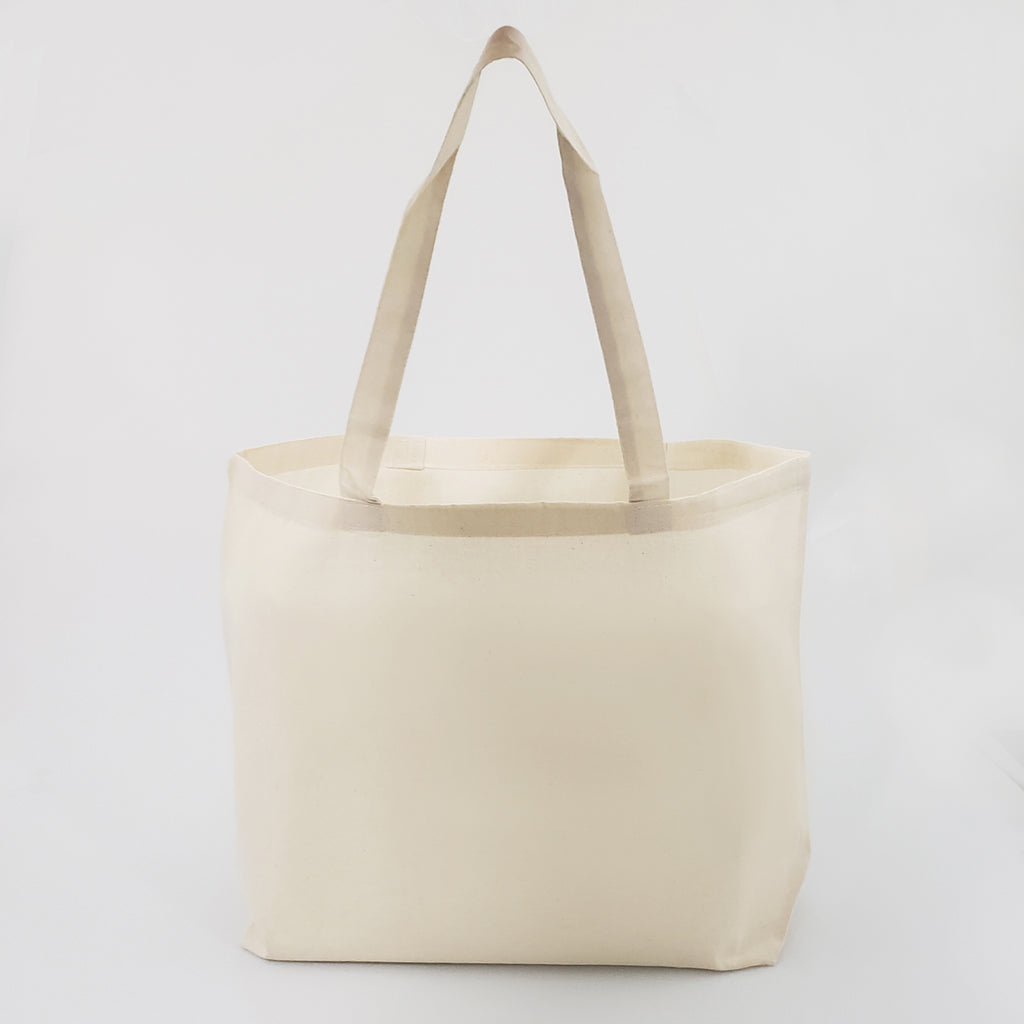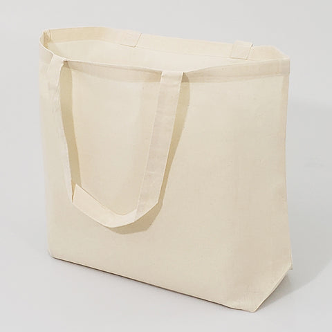 One of our most affordable large size tote bags. This large blank tote bag comes with 23 inches self fabric handles and is made out of 100% cotton material. Our cheap wholesale prices are lowest guaranteed so you can shop with confidence.