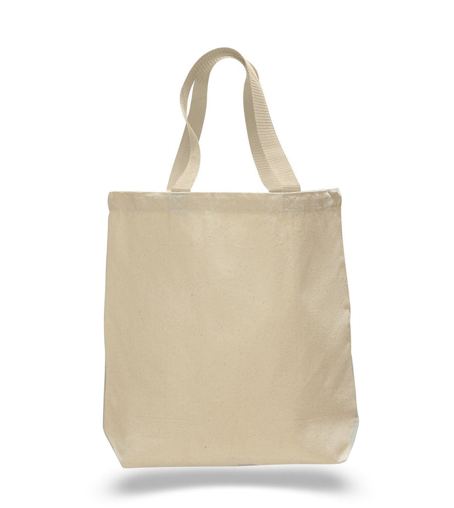 This quality 100% Cotton Canvas tote bag comes with a lowest price guarantee. It’s made to last years of use with its reinforced stress points, heavy canvas and durable fabric.  Go for a solid color, or choose for different colored handles for a more unique look.