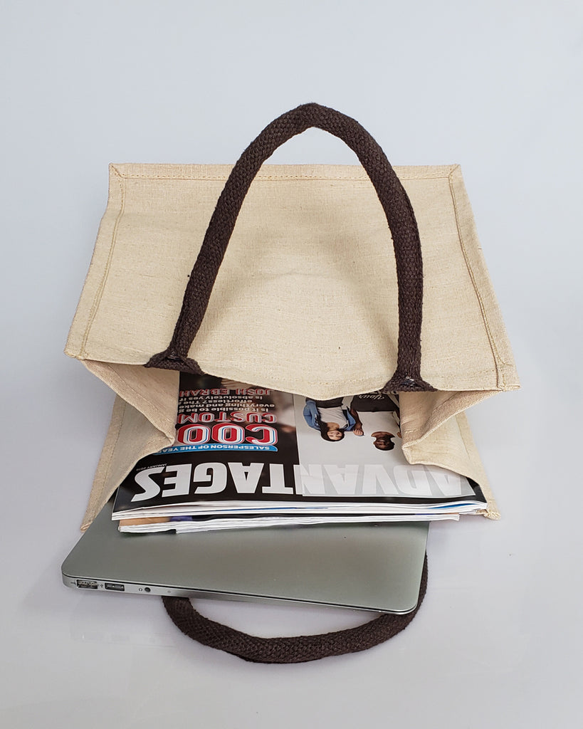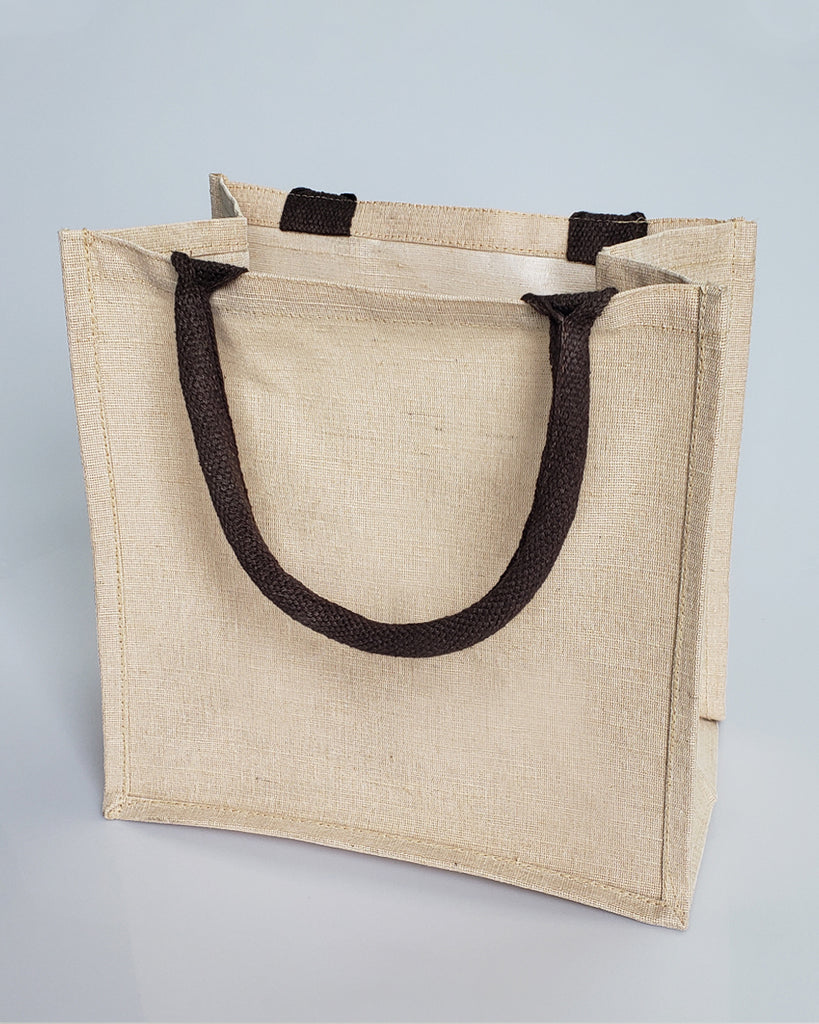 These cute burlap bags made of  75% Jute and 25% Cotton. The fine blend of both jute and cotton give Juco (Jute & Cotton Mix) an edge on both materials, hard-wearing durability, smooth touching, and detailed printing opportunity. It has a large area for your logo, slogan, event, date or other information to be silkscreen printed, embroidered on. These natural jute tote bags are perfect for  promotions, trade show giveaways, church events, creative DIY projects, arts & crafts, gifts, school, wedding favors, bachelorette parties, birthdays, advertising your business and fundraising needs.