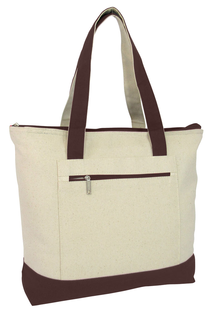 12 ct Heavy Canvas Zippered Shopping Tote Bags - By Dozen
