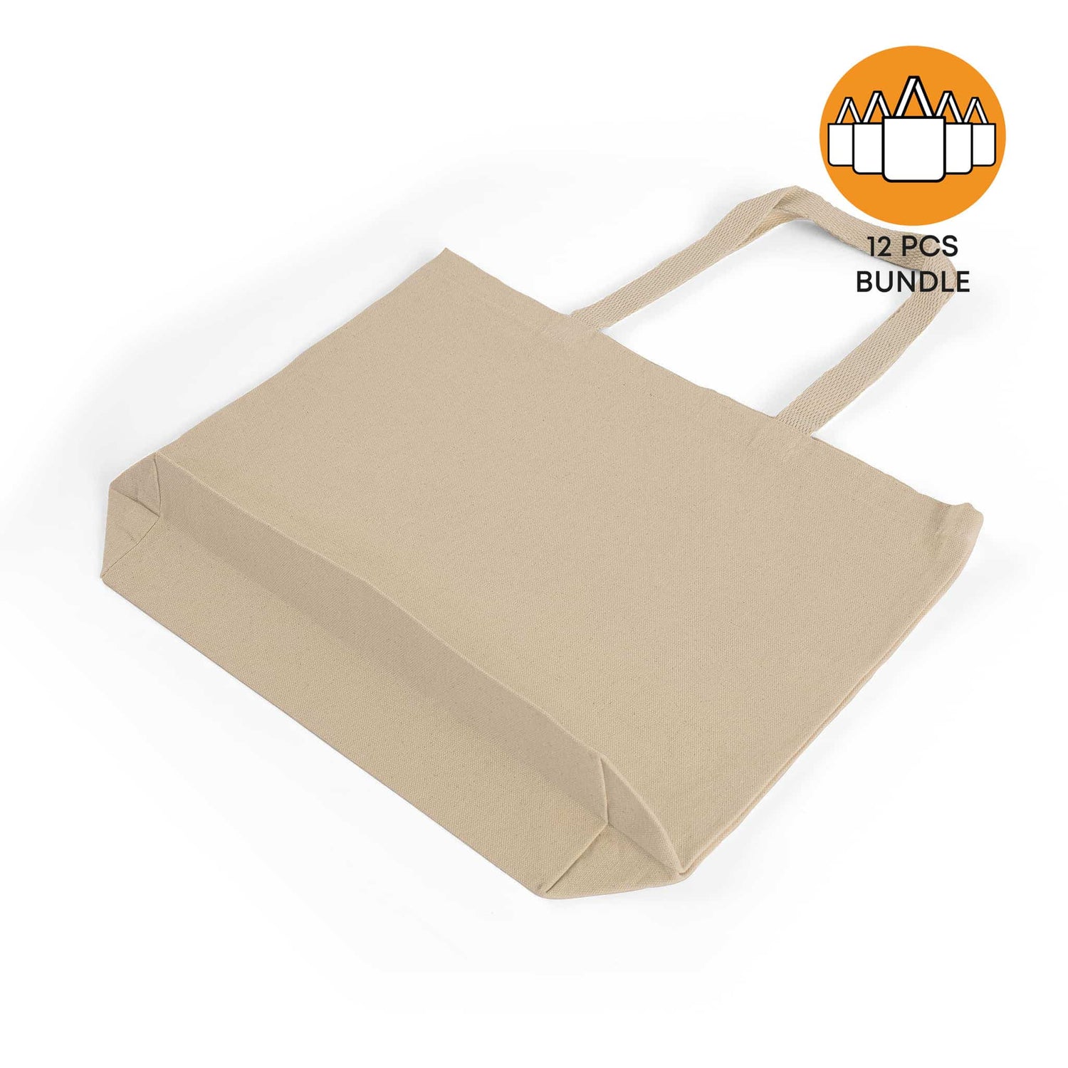 12 ct Med/Large Canvas Bulk Tote Bag with Long Handles - By Dozen