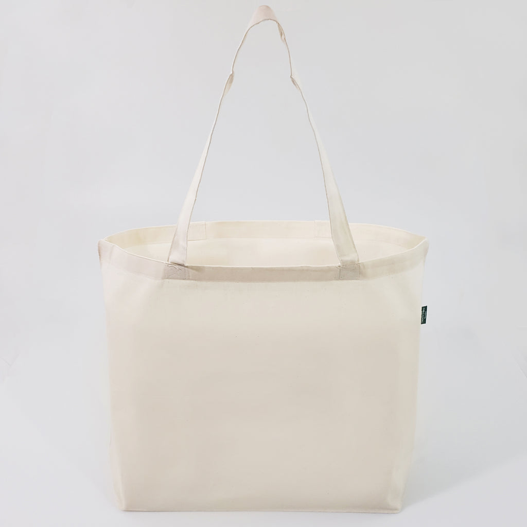 If you are looking for a sturdy and spacious organic cotton tote bag then this durable 6 ounce- 100% cotton grocery tote bags will be the choice for you. 23" over-the-shoulder self fabric handles are reinforced with stress point stitching for durability and to carry a heavy load comfortably. Use this bag daily, for work, at the beach or a day of grocery shopping. Perfect for personal diy projects or promotional purposes for your business.