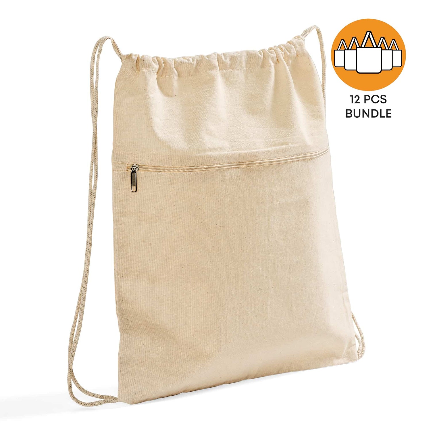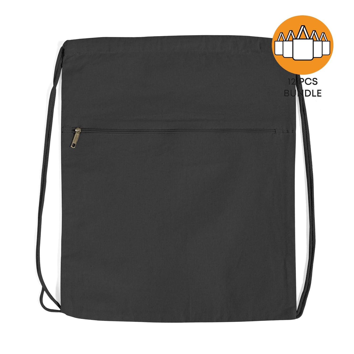12 ct Zippered Cotton Canvas Drawstring Bag Backpack - By Dozen