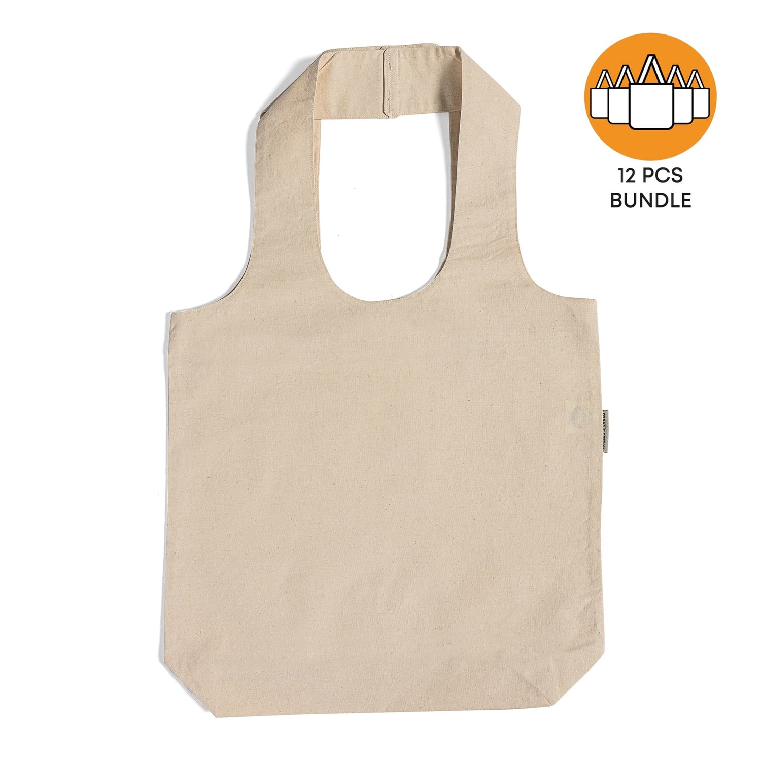 12 ct Large 100% Soft Cotton Stow-N-Go Tote Bag - By Dozen - Natural is backordered and will ship as soon as it is back in stock.