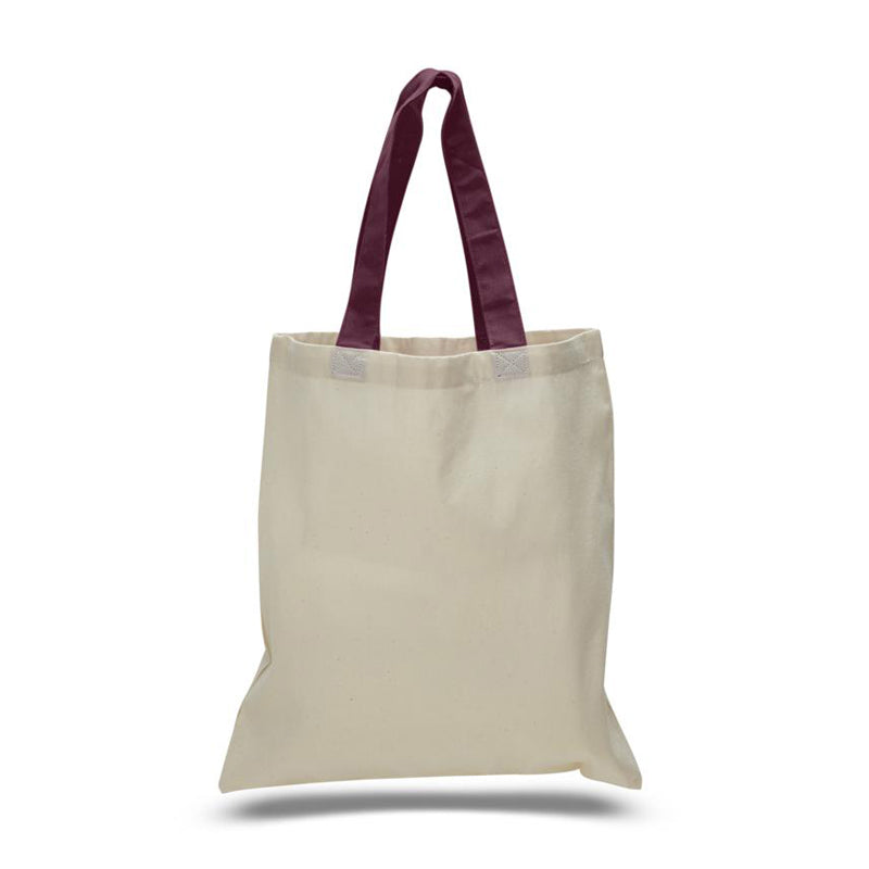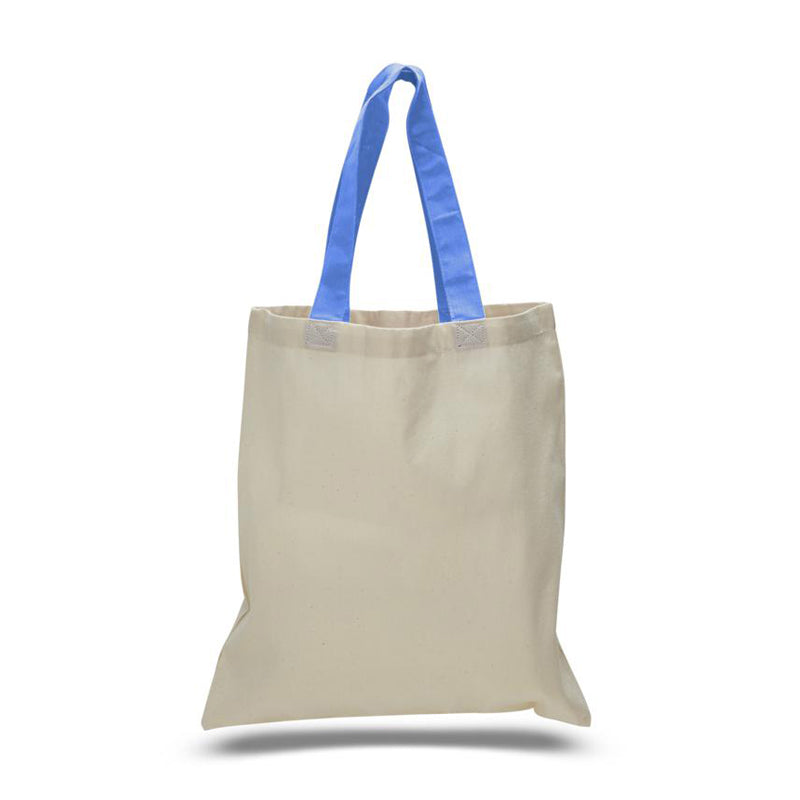 12ct Wholesale Tote Bags With Color Handles 100% Cotton - By Dozen
