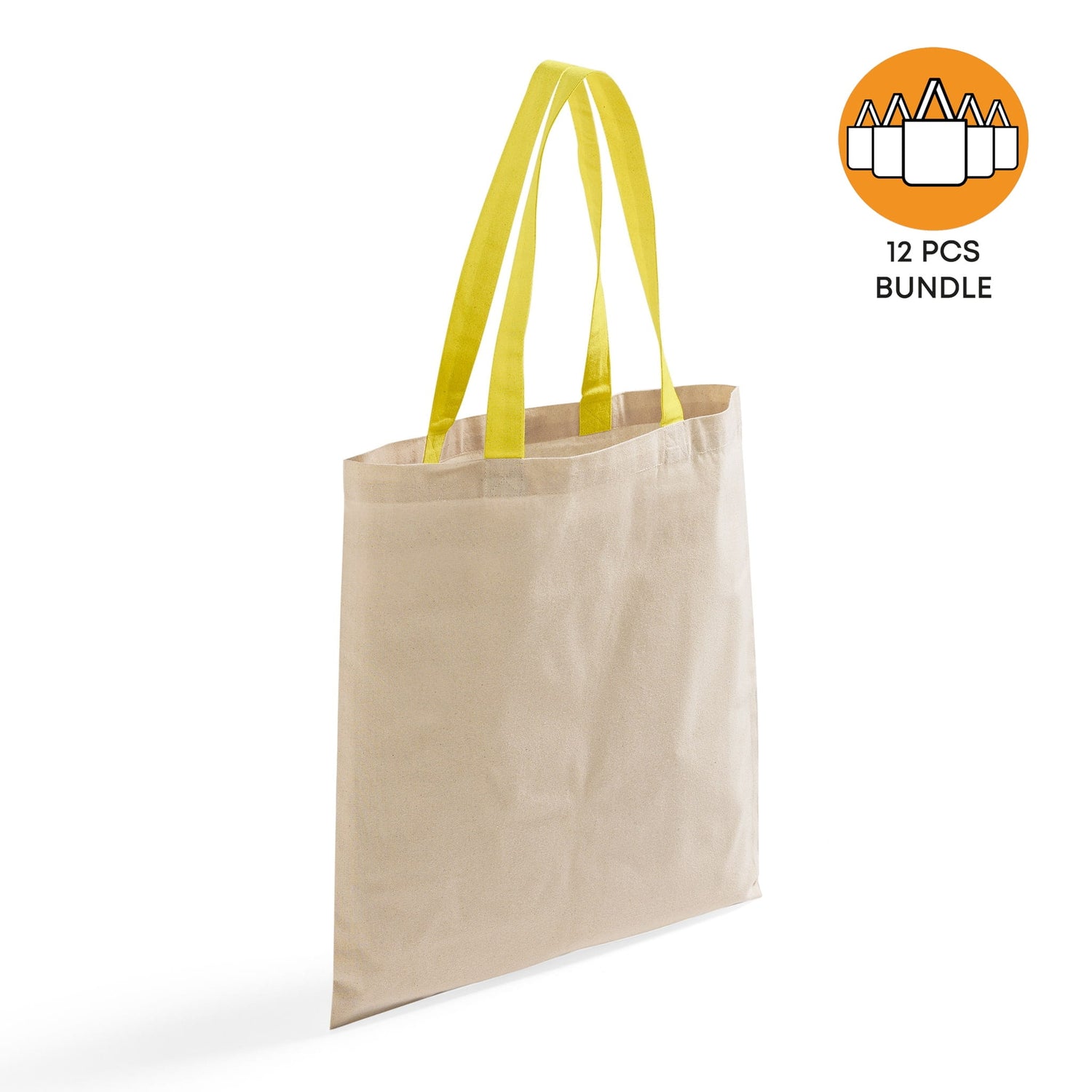 12ct Wholesale Tote Bags With Color Handles 100% Cotton - By Dozen