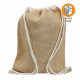 96 ct Jute Drawstring Bags / Natural Burlap Backpacks - By Case