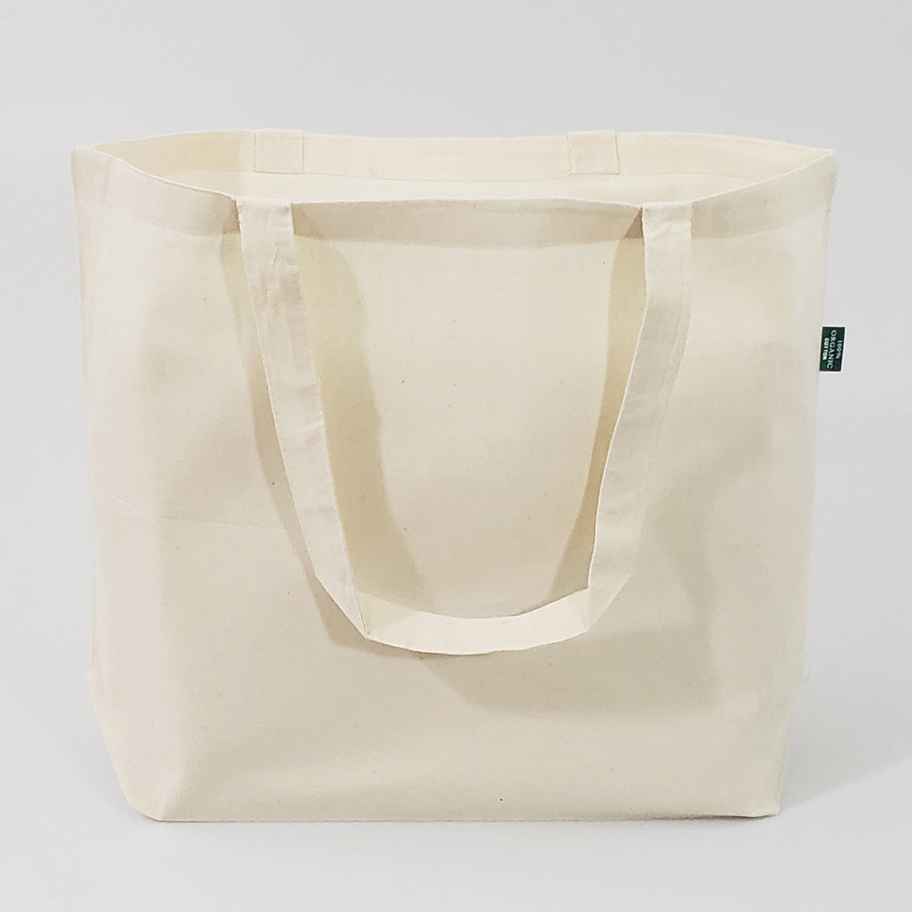 If you are looking for a sturdy and spacious organic cotton tote bag then this durable 6 ounce- 100% cotton grocery tote bags will be the choice for you. 23" over-the-shoulder self fabric handles are reinforced with stress point stitching for durability and to carry a heavy load comfortably. Use this bag daily, for work, at the beach or a day of grocery shopping. Perfect for personal diy projects or promotional purposes for your business.
