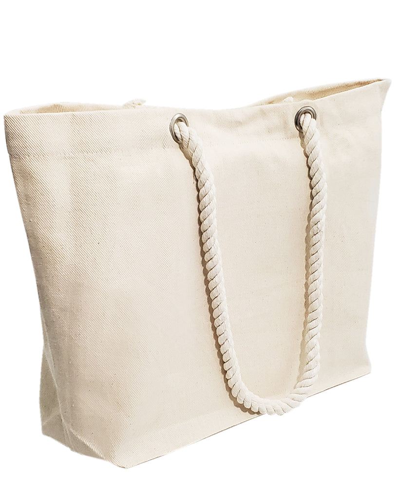 48 ct Large Canvas Beach Tote Bag with Fancy Rope Handles - By Case