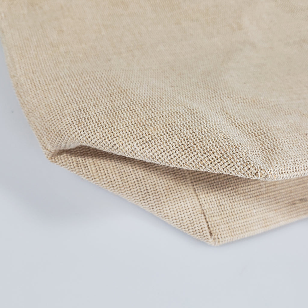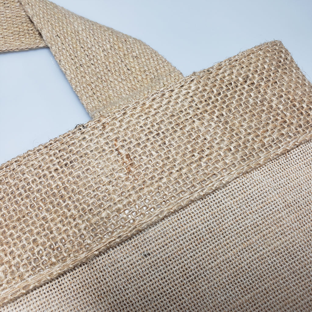 This fancy two-colored burlap bags made of 75% Jute and 25% Cotton. The fine blend of both jute and cotton give Juco (Jute & Cotton Mix) an edge on both materials, hard-wearing durability, smooth touching, and detailed printing opportunity. It has a large area for your logo, slogan, event, date or other information to be silkscreen printed, embroidered on. These natural jute tote bags are perfect for promotions, trade show giveaways, church events, creative DIY projects, arts & crafts, gifts, school, wedding favors, bachelorette parties, birthdays, advertising your business and fundraising needs.