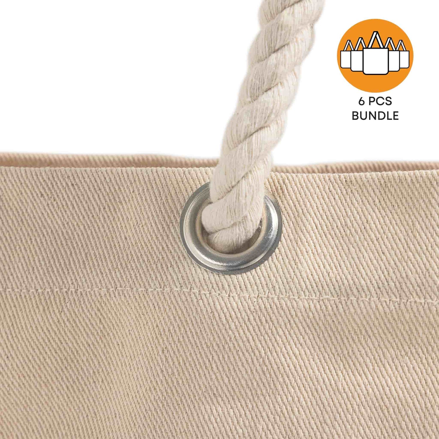 6 ct Large Canvas Beach Tote Bag with Fancy Rope Handles - By Bundle