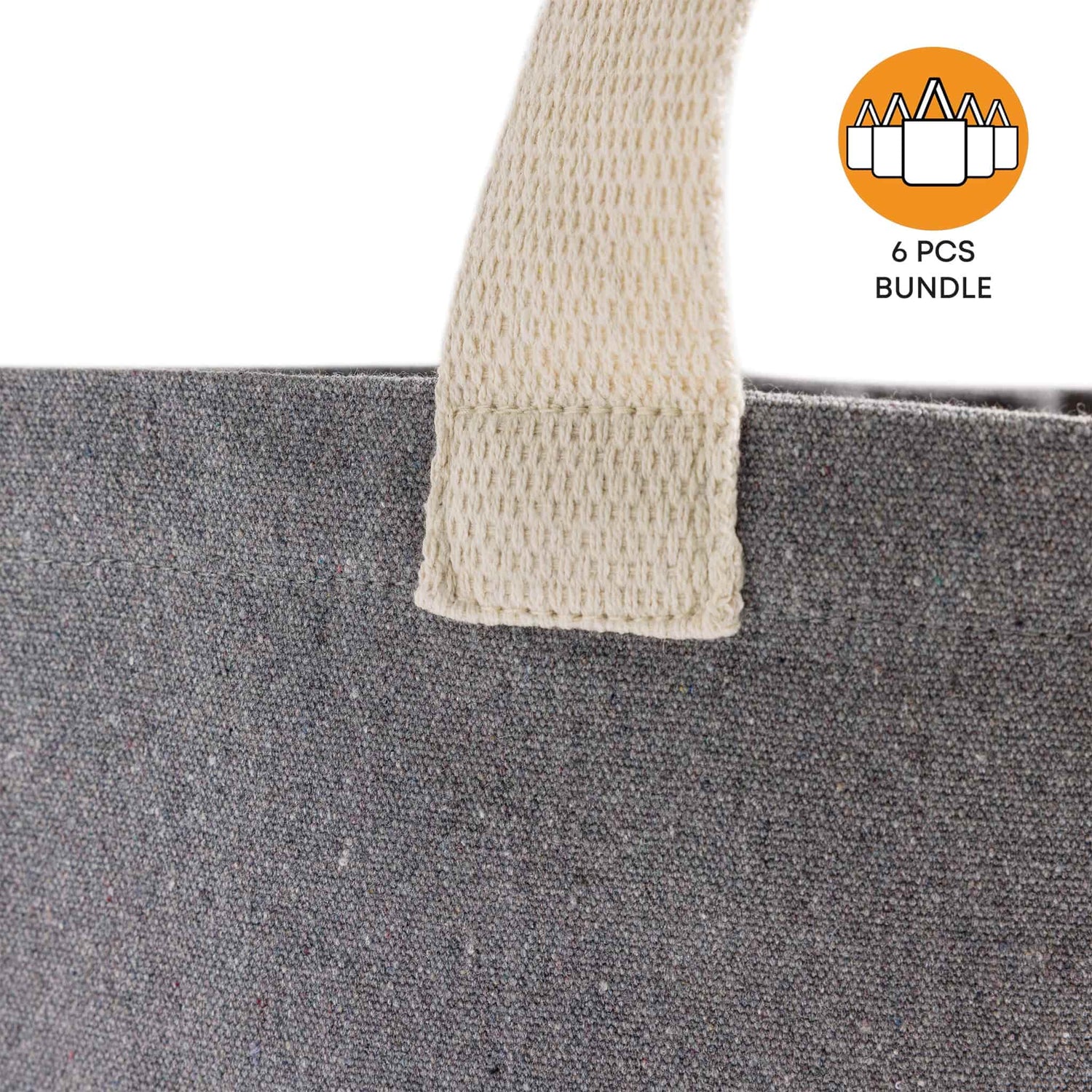 6 ct Recycled Canvas Flat Tote Bag / Basic Book Bag - Pack of 6