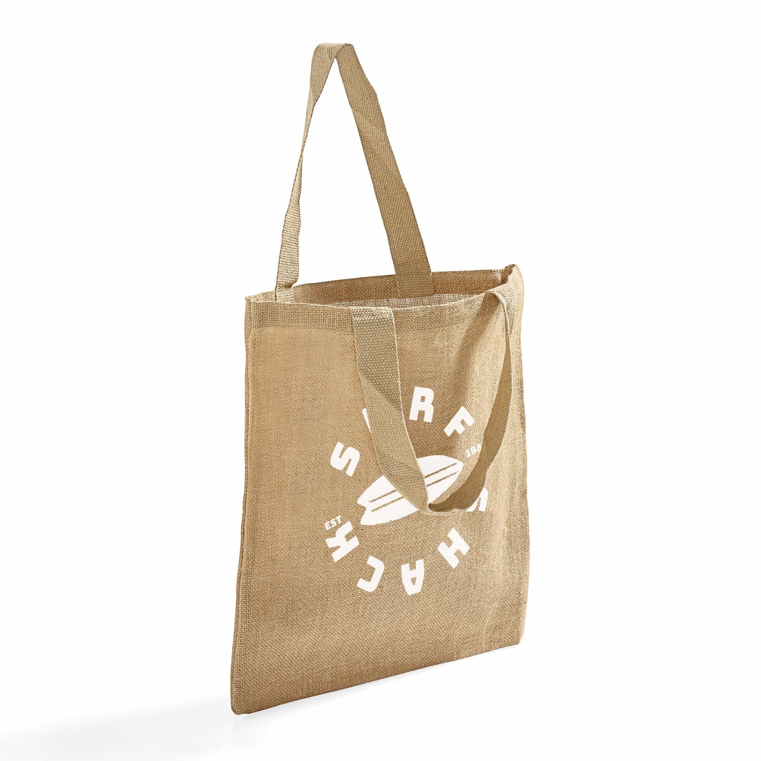 The Burlap Promotional Tote Bag comes with a large 14" W x 14" H imprint area where we can print your logos, artwork, or slogans. These promotional burlap bags / jute tote bags wholesale are made of 100% natural jute/burlap fiber, which is strong and durable. Shop with confidence — ToteBagFactory.com offers the lowest prices and live customer service. Our company provides blank bags as well as custom bags with your logo.