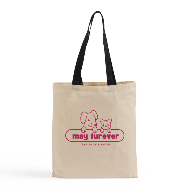 Order our natural cotton bags with black color handles, put your company logo or artworks to customize them. Affordable printing with the best quality bags on the market. Shop with confidence, TotebagFactory.com offers the cheapest prices and live customer service. Our company provides blank bags as well as custom bags with your logo.