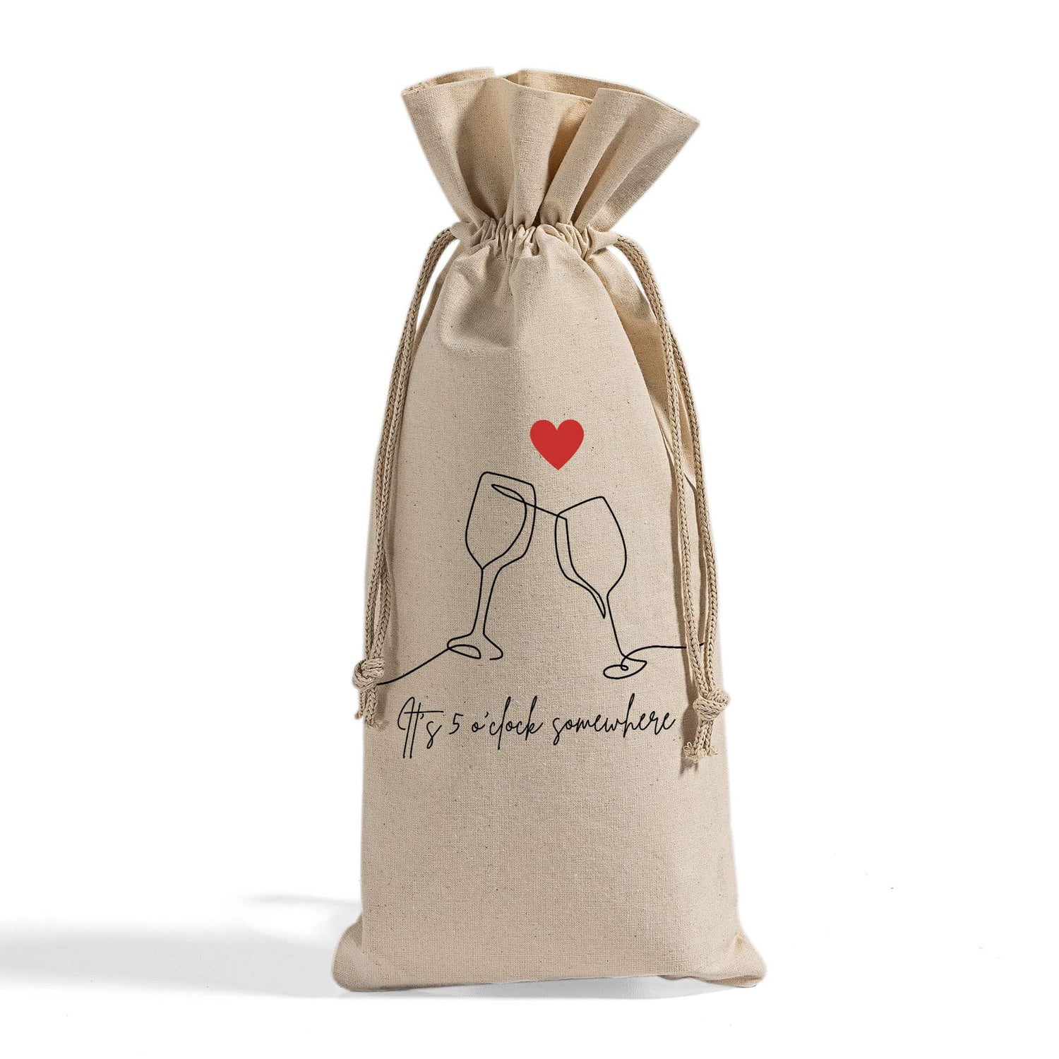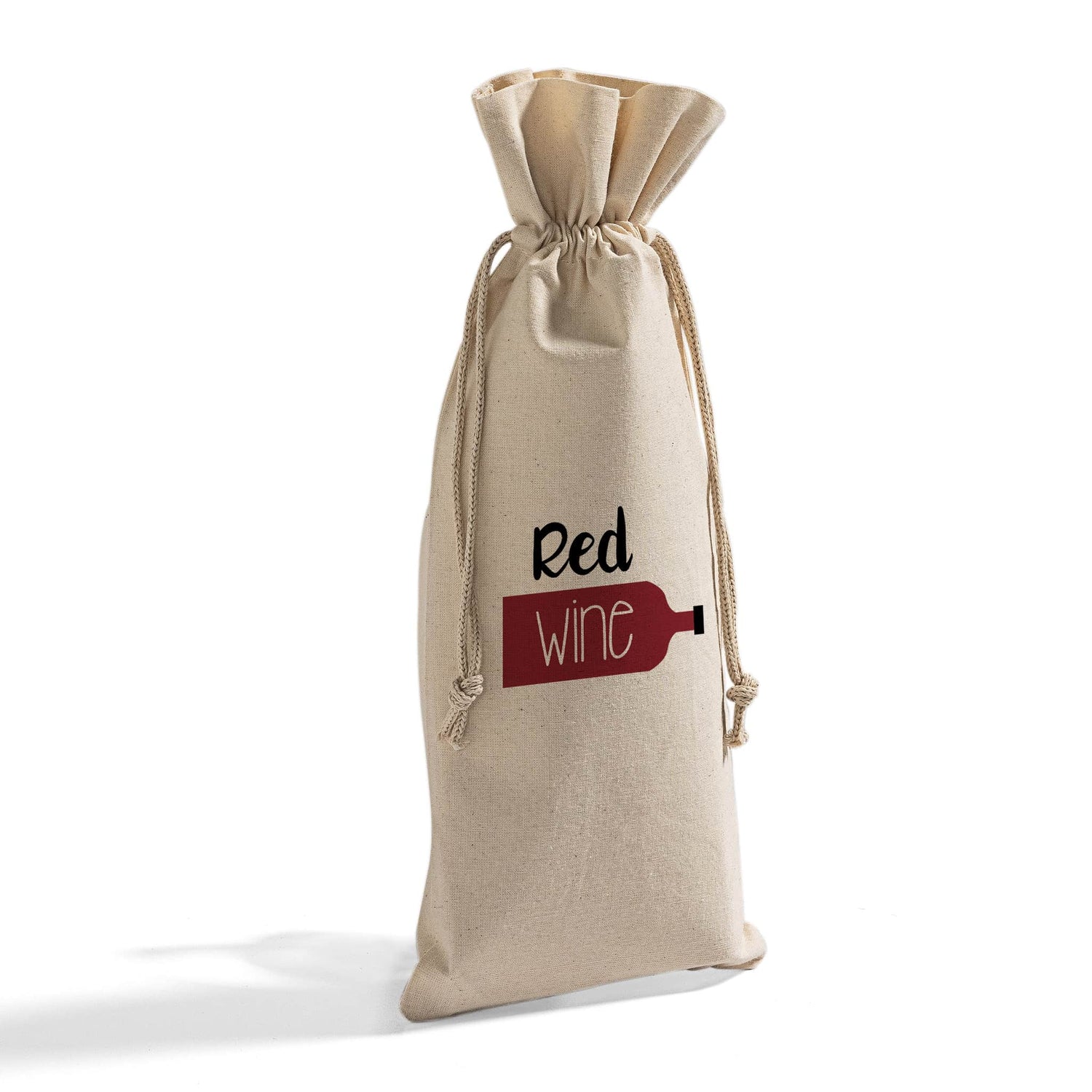 Printed Cotton-Jute Natural Wine Bags with Drawstrings Closure - Custom Jute Drawstrings With Your Logo