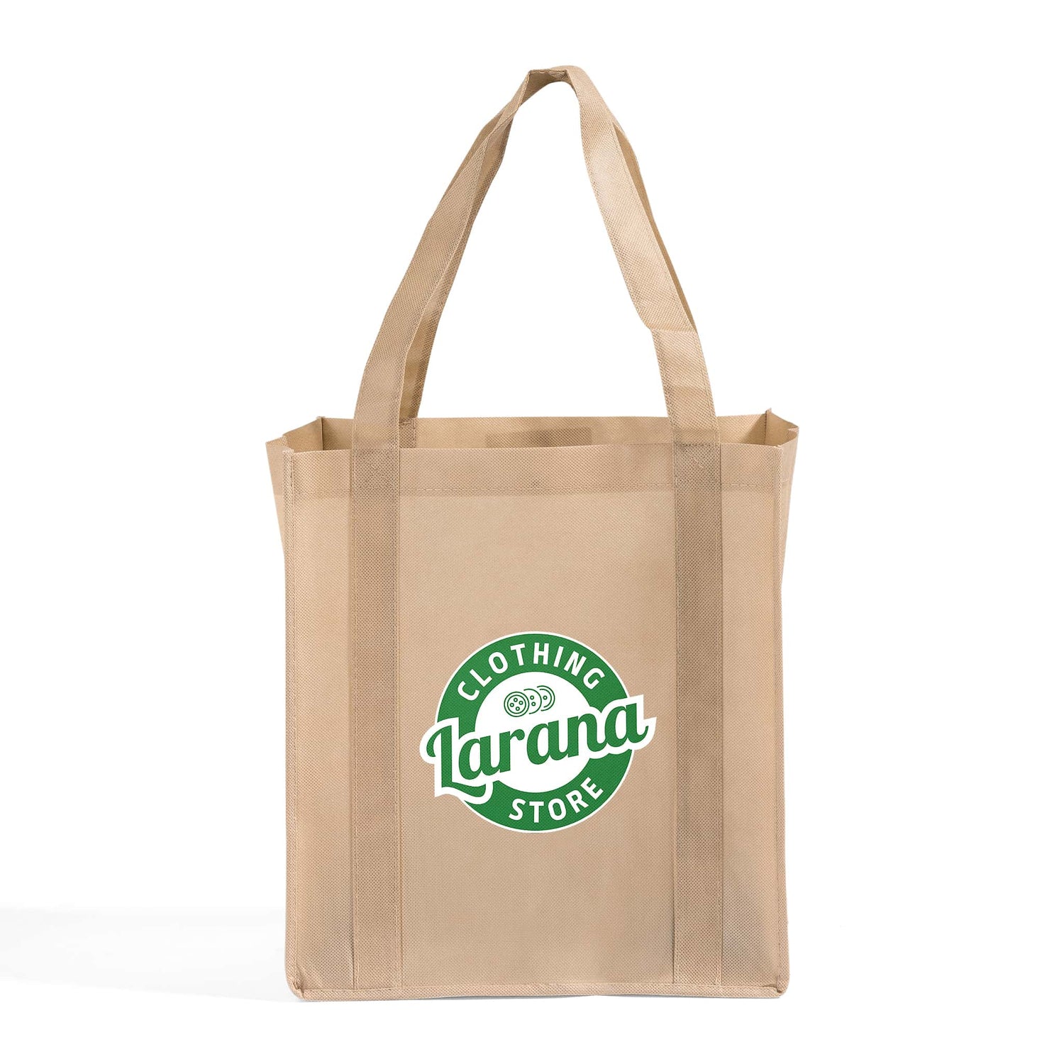 These Custom Grocery Shopping Bag comes with large 7"W x 10"H imprint area that we can print your logos, artworks or slogans on. Very Durable High Quality reusable grocery bags for cheap prices are what ToteBagFactory.com has to offer. This bag is made out of 100 gm Non-Woven Polypropylene fabric and comes in 13 different color. Shop with confidence, TotebagFactory.com offers the cheapest prices and live customer service. Our company provides blank bags as well as custom bags with your logo.