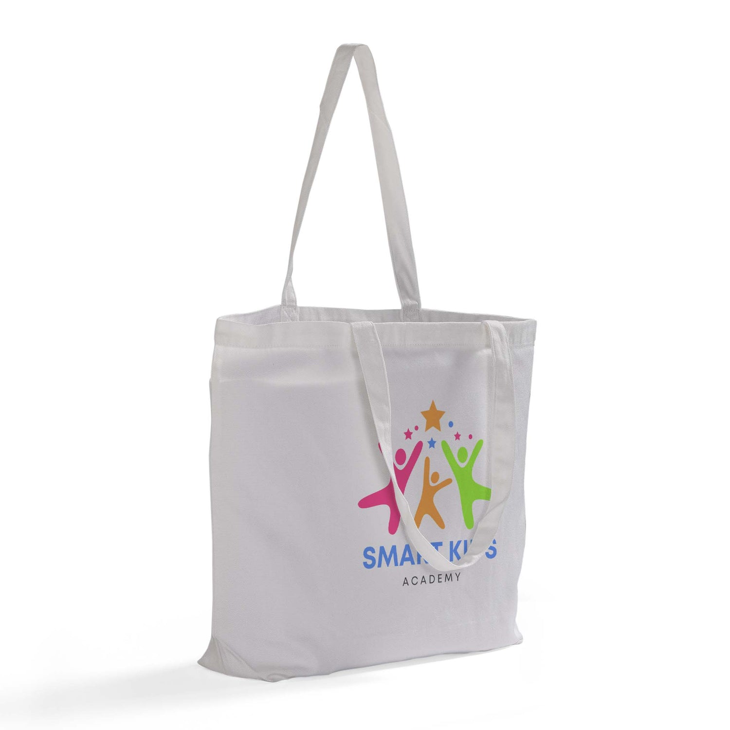 This large tote bag has a squared-off bottom for support and stability, and the polyester canvas with reinforced stress points helps prevent ripping and ensures long-lasting use. It is ideal for shopping, family picnics, or events. The bag is made from 100% polyester canvas-style fabric and can be customized with sublimation, screen printing, heat transfer papers, heat transfer foils, or CAD-cut vinyl and foils. We also offer blank organic bags and custom bags with your logo.
