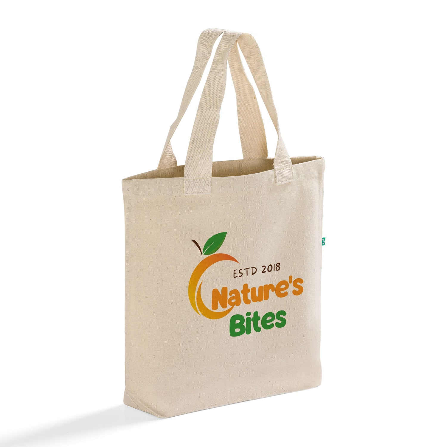 This recycled canvas tote bag is made to last for years of use with its reinforced stress points. If you are looking for a sturdy, chemical-free tote bag, this durable 12-ounce 100% certified organic cotton option is perfect for you. The organic cotton self-fabric handles are reinforced with stress-point stitching for durability and the ability to carry heavy loads. Our company offers blank organic bags as well as custom bags with your logo.