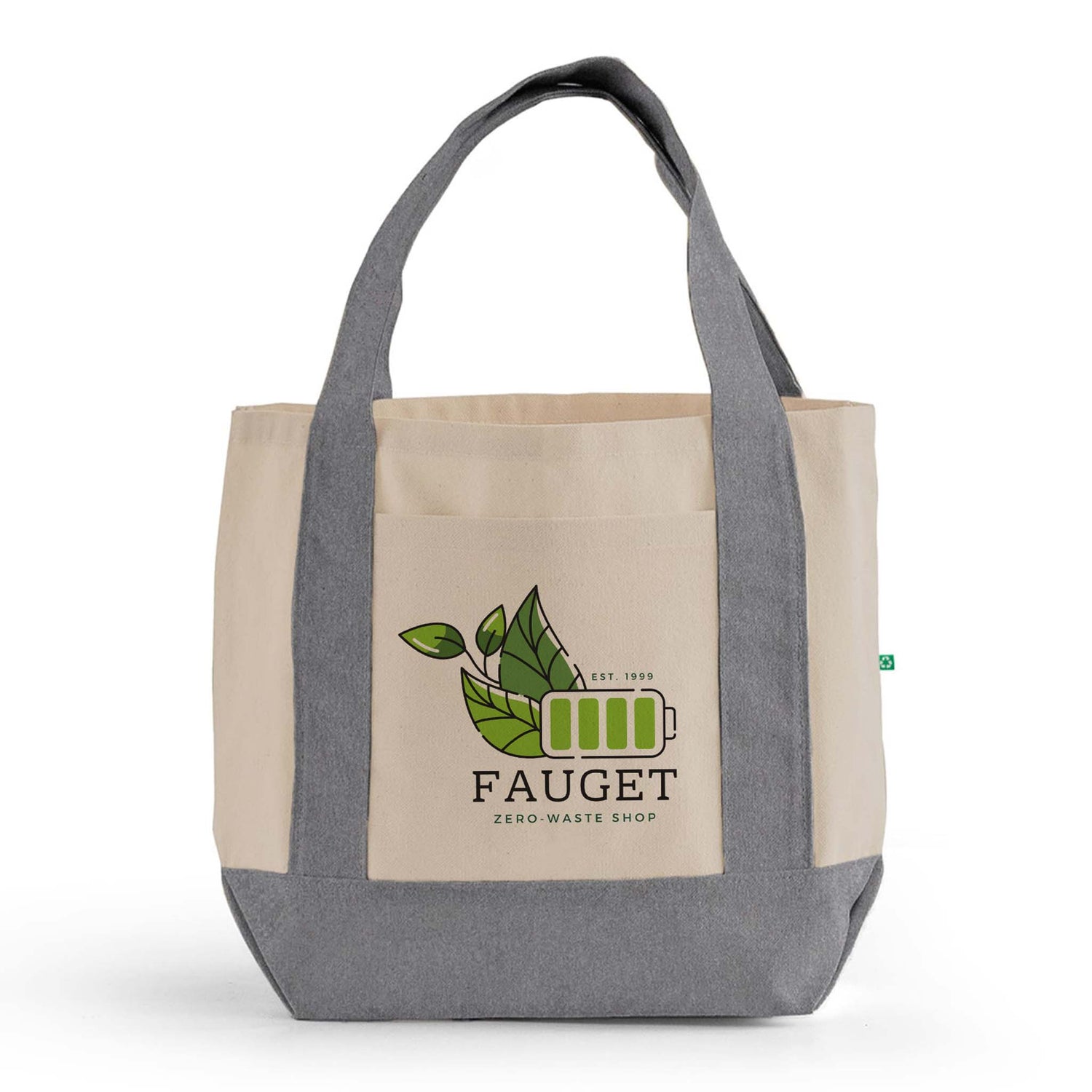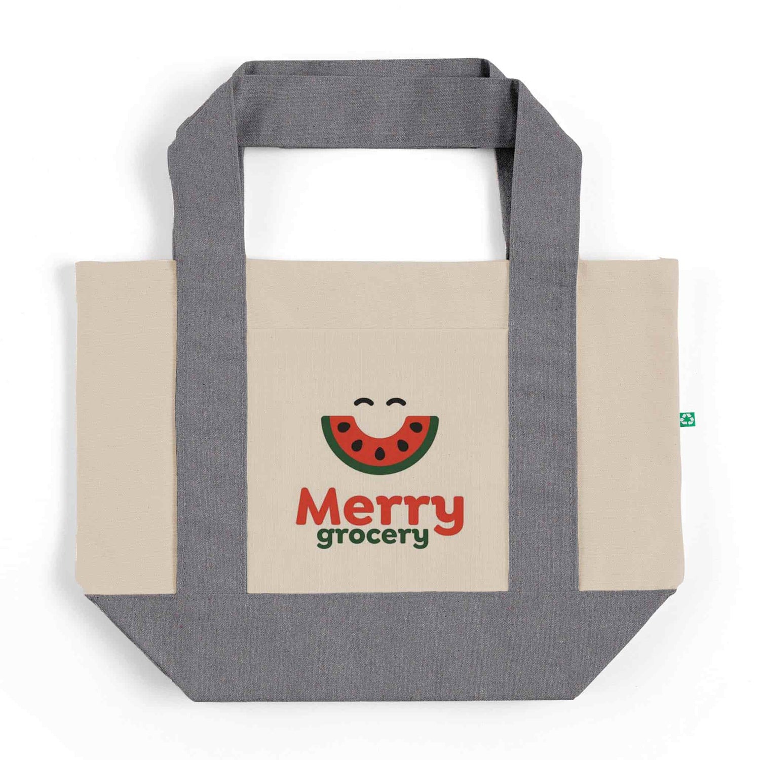 Custom Recycled Mini Iconic Shopping Bag - Natural / Ash Grey / 1 Color / Front is backordered and will ship as soon as it is back in stock.