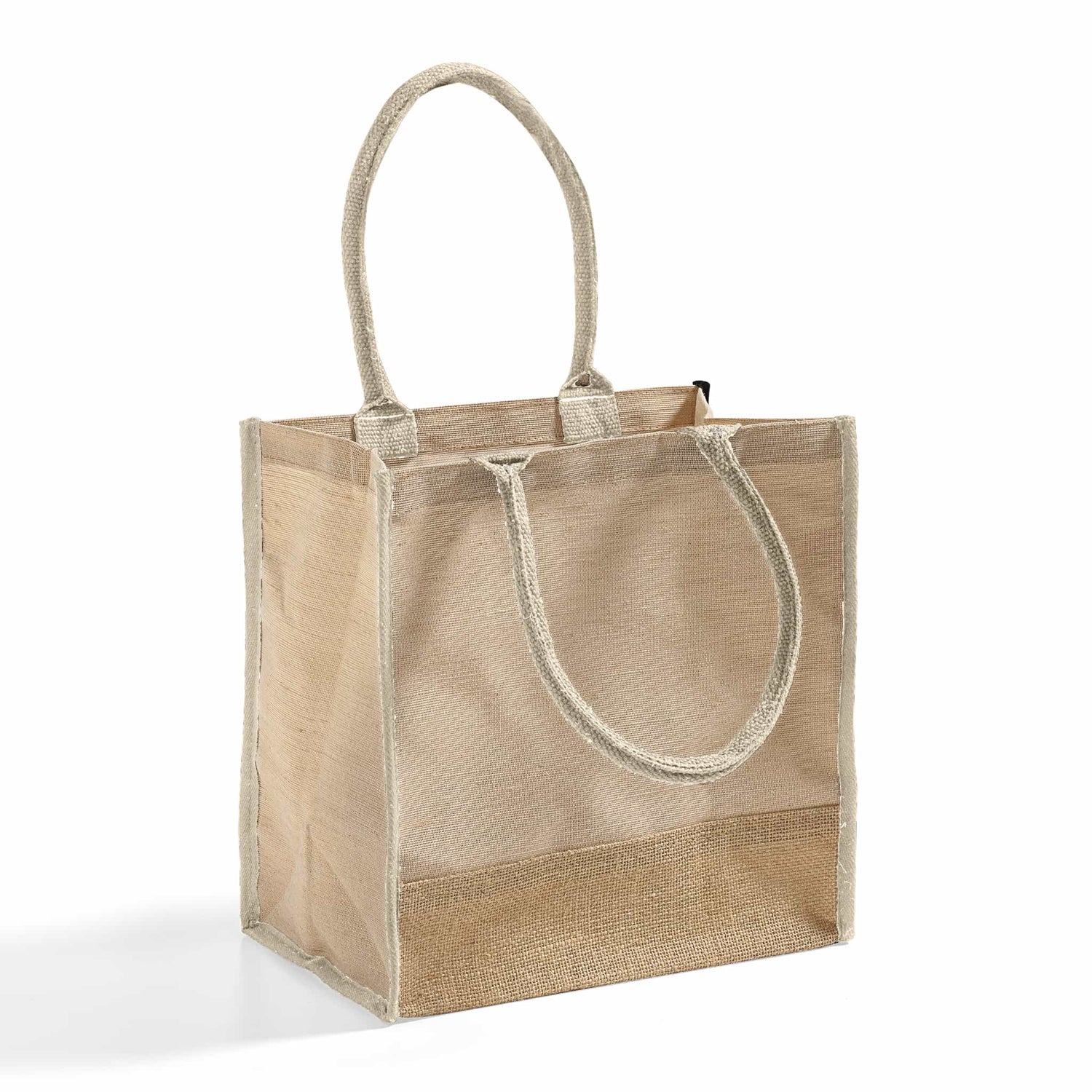 Fancy Jute Blend Tote Bags Burlap Carry-All Totes with Full Gusset - TJ912