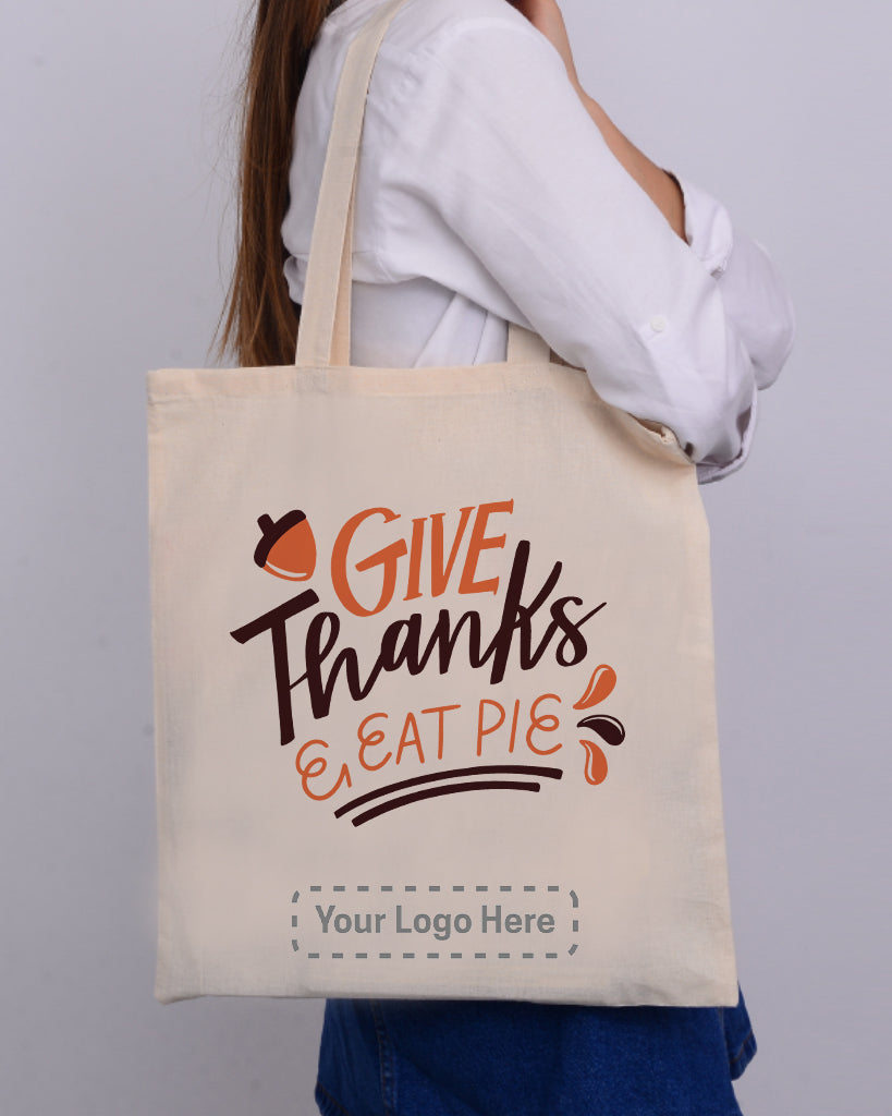 Order our Thanksgiving Tote Bag printed on natural cotton bags with self fabric handles. You can add your company logo, wedding date, a text, name or artworks to customize them. Affordable printing with the best quality bags on the market. Shop with confidence, TotebagFactory.com offers the cheapest prices and live customer service. Our company provides blank bags as well as custom bags with your logo.