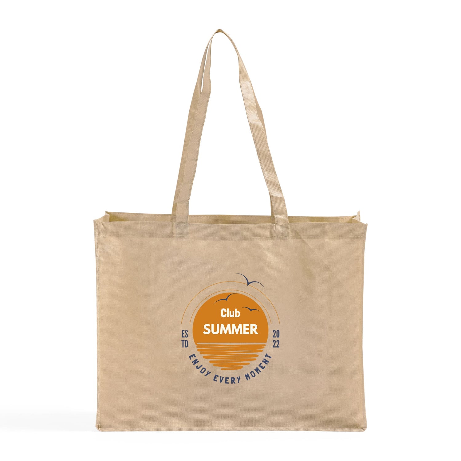 These Large Custom Shopping Bag comes with large 14"W x 10"H imprint area that we can print your logos, artworks or slogans on. This cheap 20 by 16 inch large tote bag comes in an 80 gm non-polypropylene fabric. With 6" bottom gusset you will have room for everything from grocery to beach towels. Shop with confidence, TotebagFactory.com offers the cheapest prices and live customer service. Our company provides blank bags as well as custom bags with your logo.