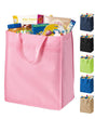 This cheap grocery tote bag comes in multiple colors to fit your identity or promotional purposes. Go grocery or gift shopping, or enjoy a day at the park or beach with this handy all purpose tote bag. The leather accents give this bag a nice look for a cheap price.