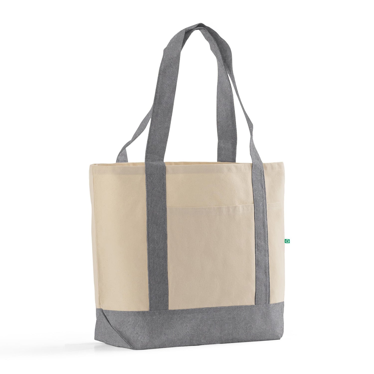 The Recycled Iconic Shopping Bag offers a sustainable and stylish solution for your everyday needs. Made from 100% recycled canvas, this eco-friendly bag is both durable and lightweight, making it perfect for shopping, errands, or as a customizable promotional item. With multiple color options and a spacious design, it combines functionality with an environmentally conscious approach. Certified by OEKO-TEX and the Global Recycled Standard (GRS), this bag ensures high standards of sustainability and safety.