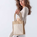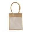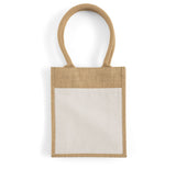 The Small Easy-Print Jute Bag is the perfect choice for lightweight, eco-friendly carrying needs with a personal touch. Made from 100% natural jute, this compact tote is ideal for smaller items like gifts, lunch, or daily essentials. Its standout feature is the front canvas panel, which makes printing and customization simple, whether for branding or creating a personalized design. Despite its petite size, the bag is sturdy and durable, offering a sustainable alternative to disposable bags. With its practical dimensions and stylish appeal, this bag is a versatile option for promotions, events, or everyday use.